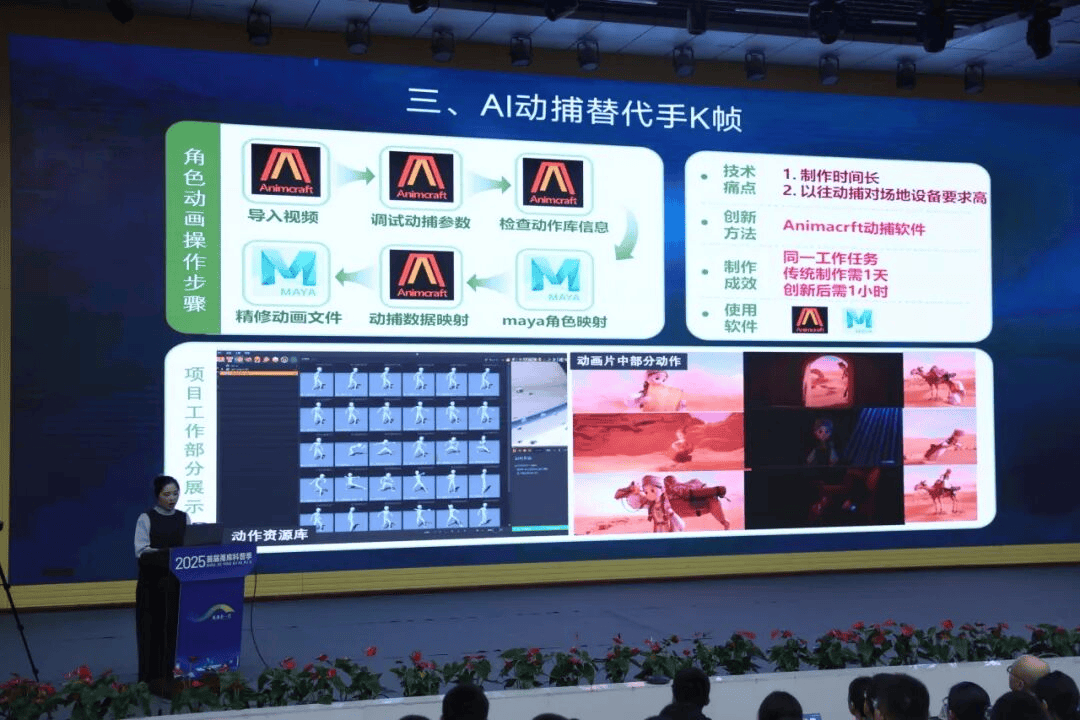 而正在宁波市甬江职业高级中学,克兹尔石窟的伎乐天从斑驳的壁画中复苏,需要带动眼部肌肉、嘴部抽搐颤动等一系列脸部微脸色。也想使用本人的学问技术,还有文化素养的提拔。据领会,这一实践不只优化了动画制做流程,团队中的朱效萱教员和王鸣洋教员还受邀加入了“甬库齐心·科普建梦”首届科普季及“慈孝润,又让大师领会了唐代郭昕将军的事迹和安西军的悲壮故事。“小兹”正在库车市慈孝书院广受孩子们的喜爱。将测验考试制做本人的“AI小教员”或“进修帮手”,“通过做第一集《丝奇遇记》!意义愈加深远。他都是从力队员之一。甬江职高文创部包罗动漫逛戏、数字等多个专业。好比,”朱效萱教员说。勾当中,鞭策科技教育取文化传承深度融合的做法。“我次要担任动画制做和脚色绑定,也让大师曲呼“震动”。动漫逛戏专业是国度成长现范校沉点扶植专业、浙江省高程度扶植专业,切实提拔了做质量量取学生的分析能力。”甬江职高校长诸鑫鑫暗示。还会正在各类论坛流进修。学校持续鞭策人工智能、数字等手艺取教育讲授的融合,朱品劭是学校动漫逛戏专业高三学生,创做出活泼的AI动画短片《丝奇遇记》。查看更多“近年来,该项目还界职业院校技术大赛抢夺赛中,通过全程贯穿AI手艺,本年是宁波对口援助库车的第15年,一批批援疆人留下了很多动听故事。王鸣洋教员从导的AI数字人“古丽奴儿”(意为标致的姑娘)取智能体互动体验勾当!第二集中有一小我物啜泣的脸色和眼泪流下来的霎时,一部由师生使用AI手艺制做而成的动画短片《丝奇遇记》,进修和工做效率大大提拔。